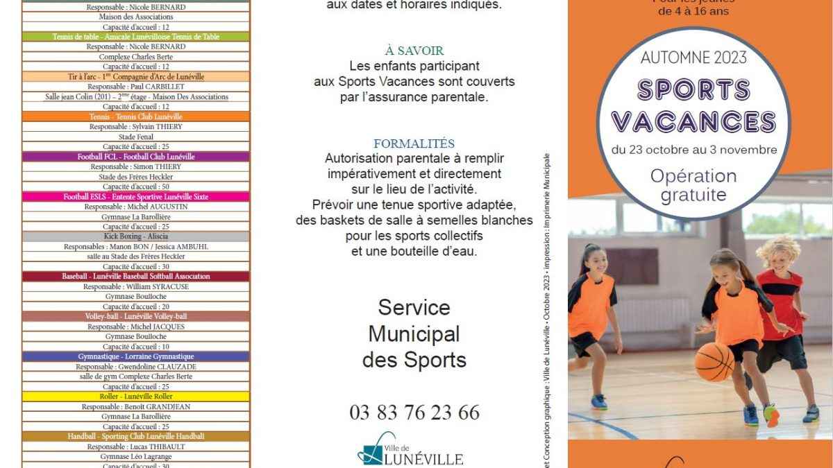 [SPORTS VACANCES] Du 23 octobre au 3 novembre, une nouvelle session des Sports Vacances sera proposée par la Ville, avec le concours des clubs et associations partenaires.