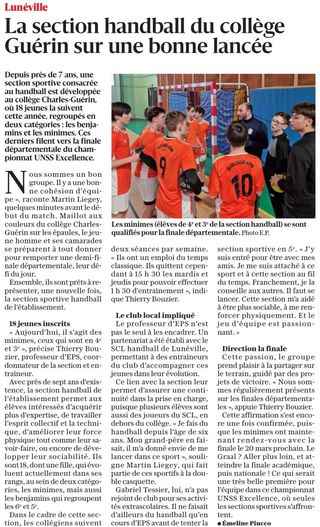 ? ????? ?? ?????? Article de l’Est Républicain sur la section sportive handball du collège Charles Guérin.